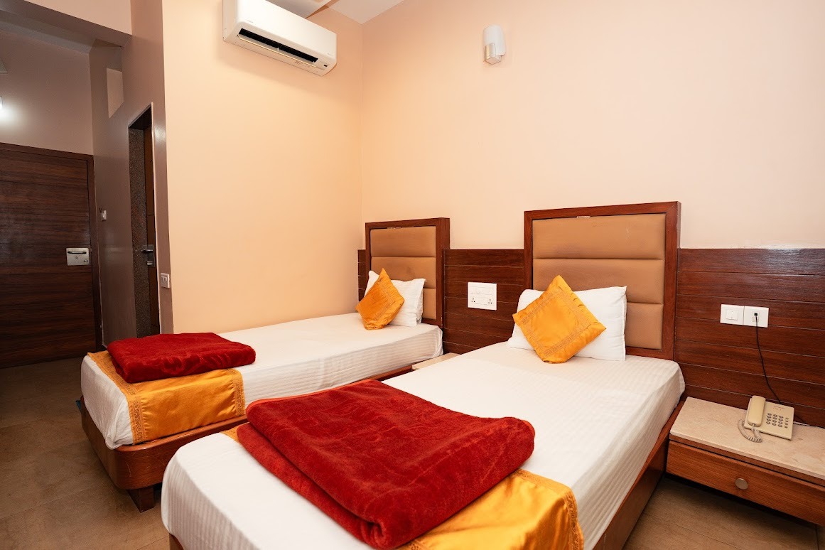 Flat-screen TV Attached bathroom Air Conditioner Personalized Room Amenities Comfortable sitting - cushion chairs with tea table. Toiletries Safety Locker 24 hrs hot water supply.